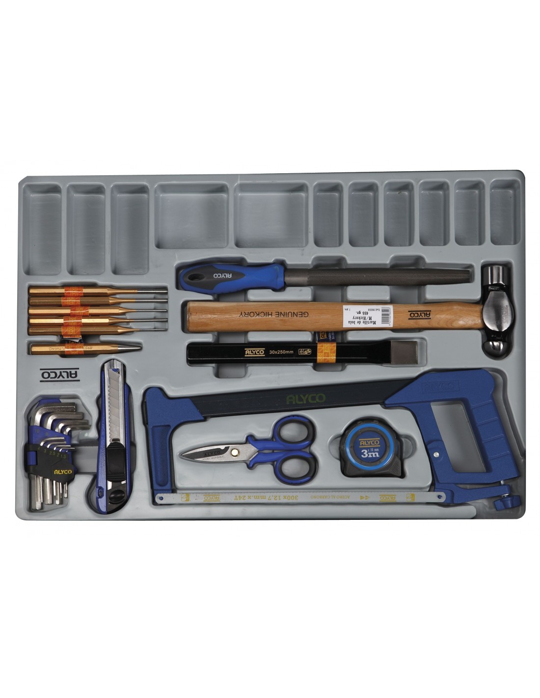 Bandeja de herramientas en base plástica para alojar una dotación de 22 herramientas y con alojamientos adicionales para consumibles.