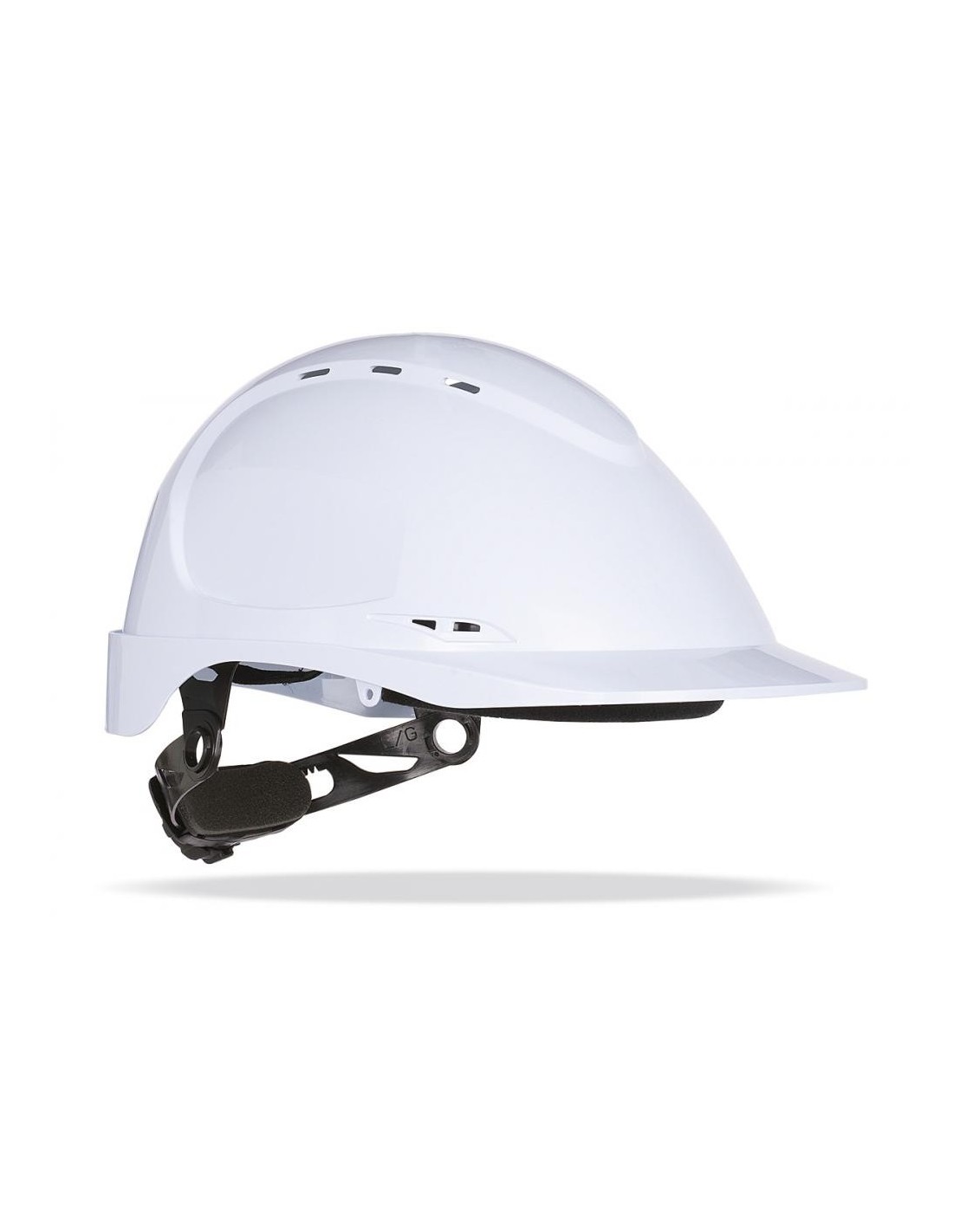 Mod. THOR (Ventilado)". Casco de protección para la industria ventilado en color blanco, cierre ruleta, arnés textil 6 puntos."