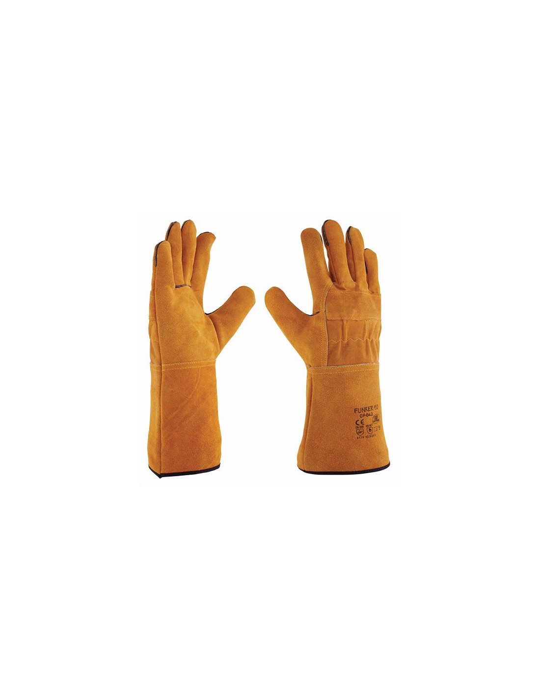 Guante completo de piel vacuno, crupón serraje, color marrón, de grueso 1.2mm a 1.3mm.