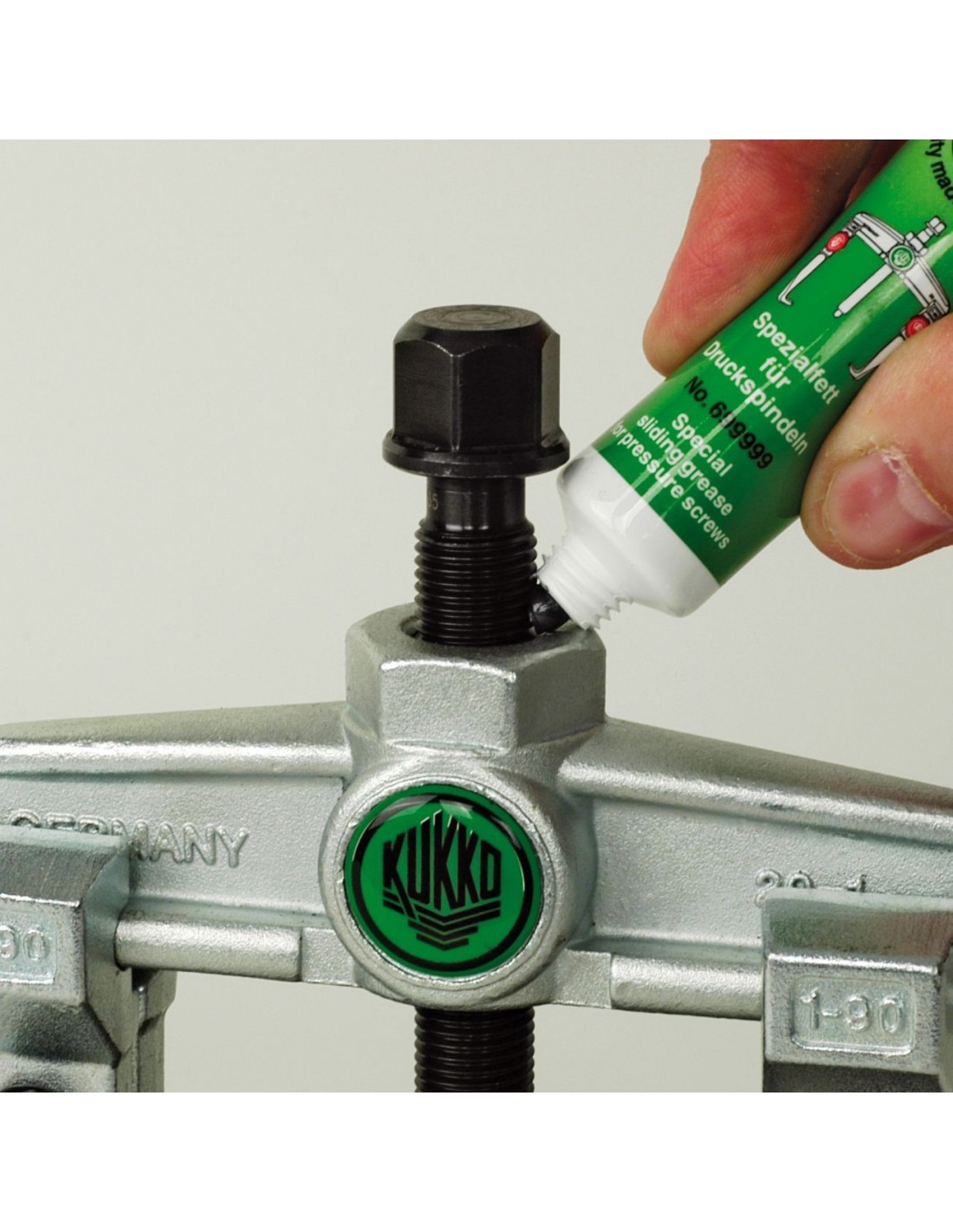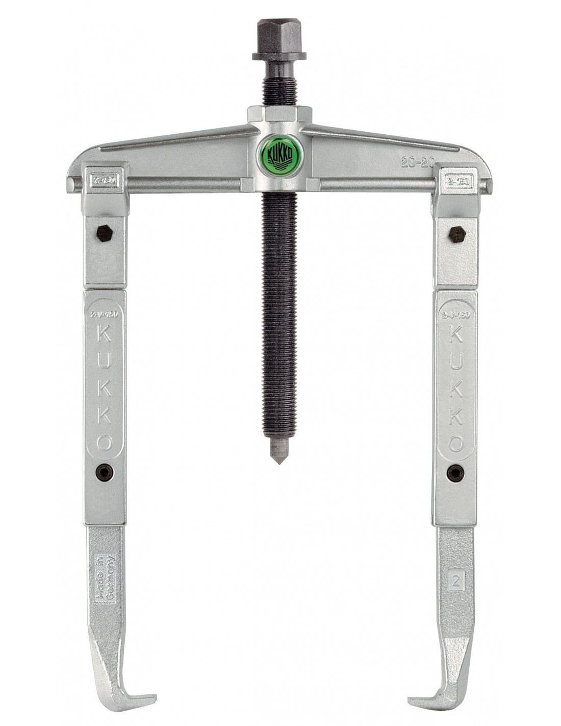 · Extractores universales de dos patas largas. · Diseño original de KUKKO que ha demostrado a lo largo de los años su robustez y fiabilidad en todo el mundo. · Patas constantemente paralelas en cada posición, por lo que sólo las superficies de apoyo tienen contacto con la pieza a extraer. · Acabado robusto, alto rendimiento, fácilmente manejable. · Aplicación universal, con patas intercambiables para varias profundidades. · Cambiando la posición de las patas se pueden utilizar como extractores de exteriores o interiores. · Incluye un tubo de grasa especial Kukko para mantener el husillo debidamente lubricado. Garantiza la máxima estabilidad de la parte deslizante de la pata Fácil desplazamiento y fijación resistente de las patas gracias a una nueva geometría optimizada de las raíles de la guía