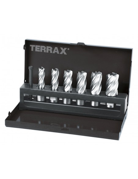 Juego de 6 brocas huecas con vástago Weldon de 19 mm + 1 guía-expulsor