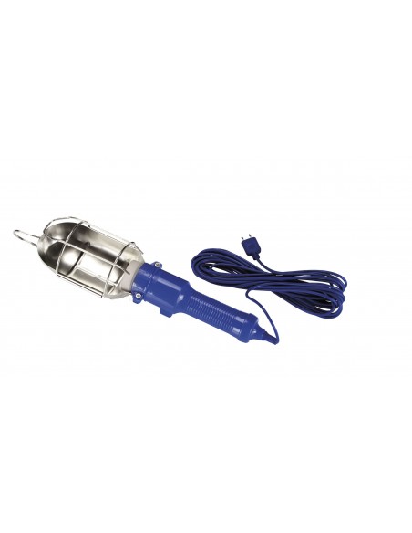 Lámpara portátil de obra con 1 foco de 60W con casquillo cerámico y reflector metálico.