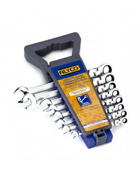 JUEGO DE LLAVES COMBINADAS CON CARRACA FLEXIBLE, SOPORTE PLÁSTICO ALYCO