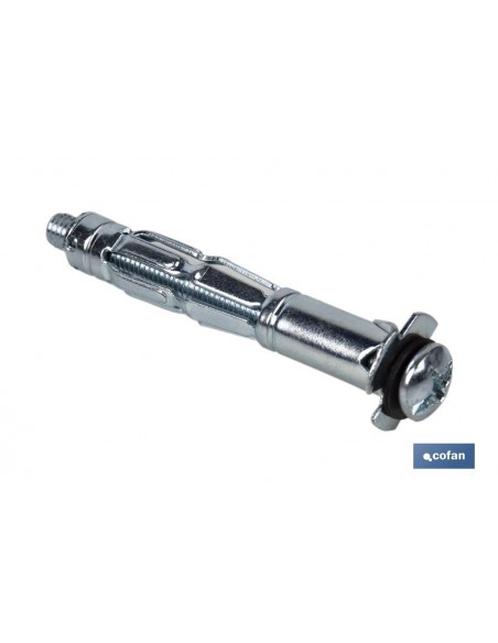 Anclaje metálico con tornillo de cabeza redonda para fijación en elementos huecos. Este tipo de anclajes se utilizan para fijar los elementos huecos como ladrillo hueco, paneles de yeso, tabique seco, panel de escayola, etc. Máxima carga sobre materiales base de pared delgada gracias a su diseño. Incluye un tornillo con huella PH de colocación fácil, rápida y controlada.Es necesario realizar una instalación previa sobre el material que fijar. Después de la instalación, el tornillo puede ser sustituido por otro de la misma métrica. Requiere de pistola o pinza de colocación con referencias 07900998 o 07900999. Medidas desde M4 hasta M6 y longitudes desde 41 mm hasta 89 mm. Hueco máximo de 22 hasta 78 mm y diámetro de 8 a 12 mm.