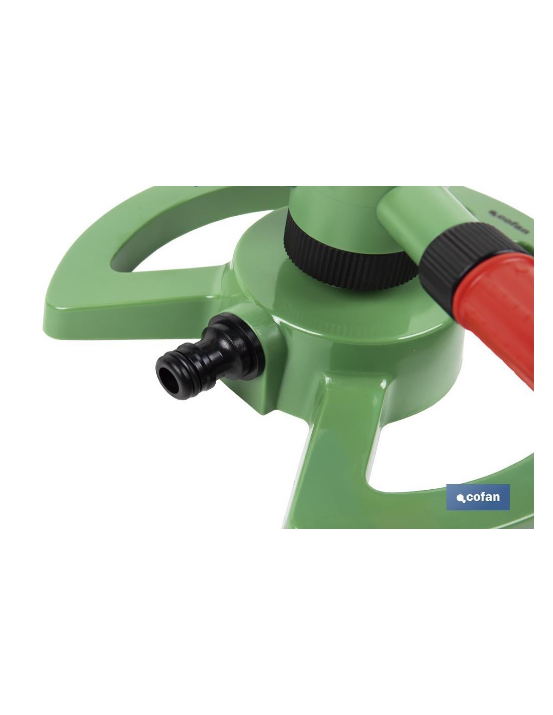 Aspersor giratorio de 3 brazos con base estática que le proporciona una mayor estabilidad. Fabricado en ABS de alta calidad para una mayor duración. Cuenta con un caudal que permite un alcance de 10,4 m y una cobertura de riego de hasta 85 m2. Es una solución ideal para regar jardines, huertos, etc. Dirección y velocidad ajustables con el aspersor. Con el aspersor giratorio de 3 brazos ahorrarás tiempo en el riego de tu jardín.