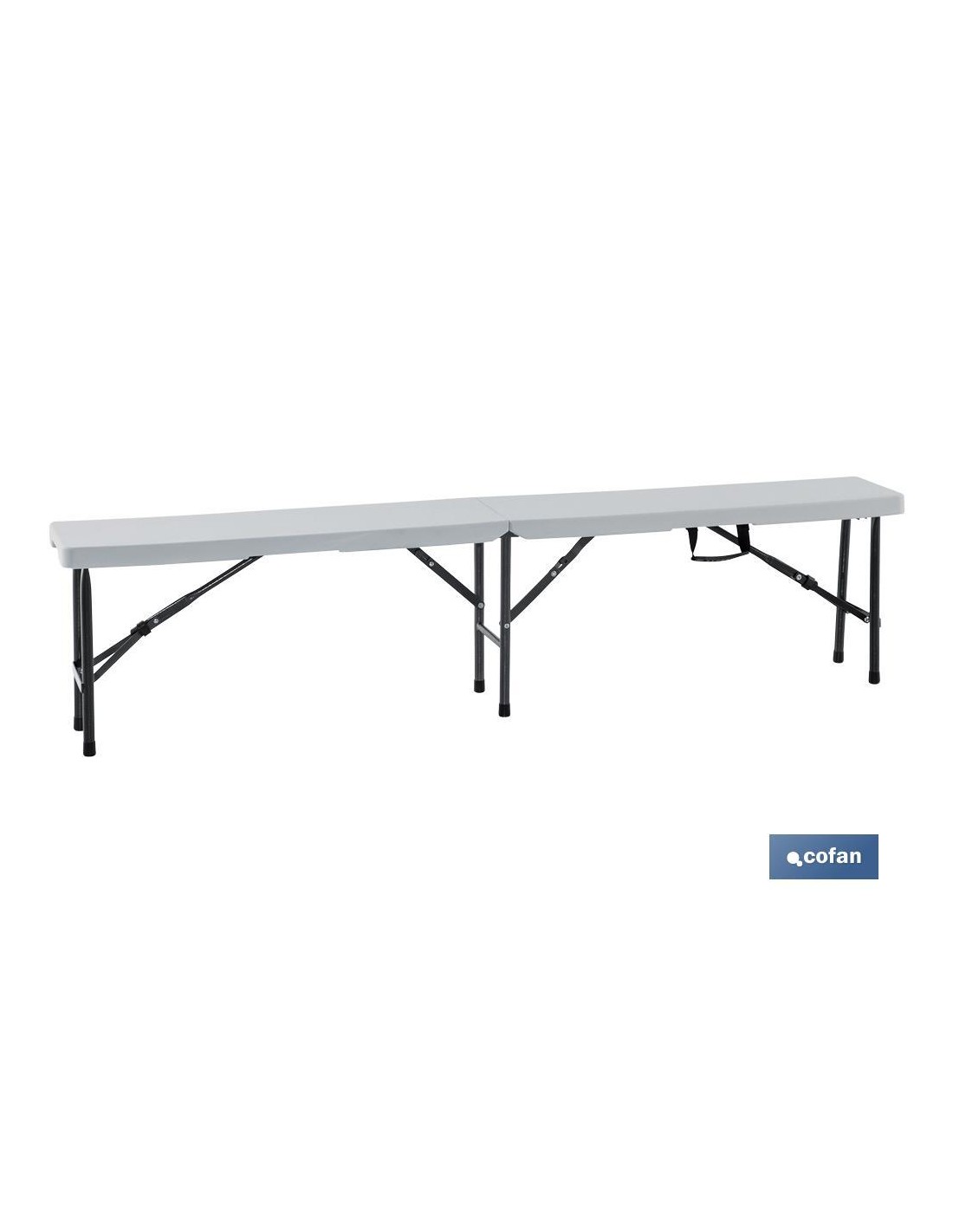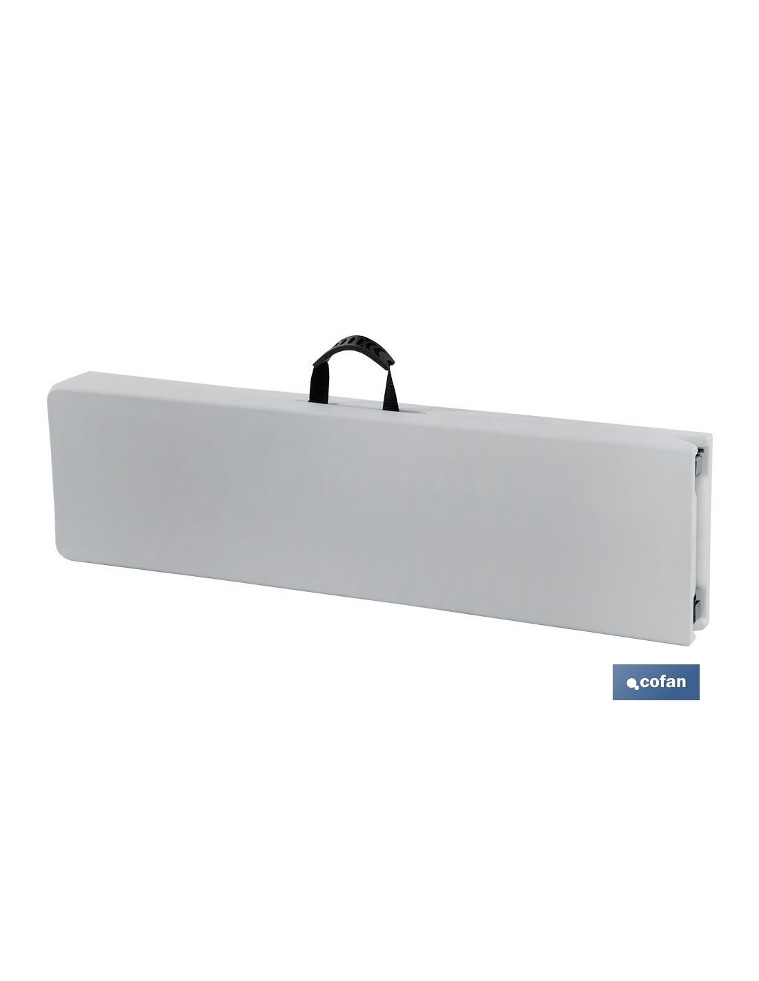 Banco plegable rectángular en color blanco, fabricado con materiales resistentes y ligeros para eventos y celebraciones. Este banco es fácil de abrir y cerrar, ocupa poco espacio cuando se cierra. Incluye asa para portar. Fabricado en Polietileno de alta densidad (HDPE) y acero. Capacidad para 3/4 personas.