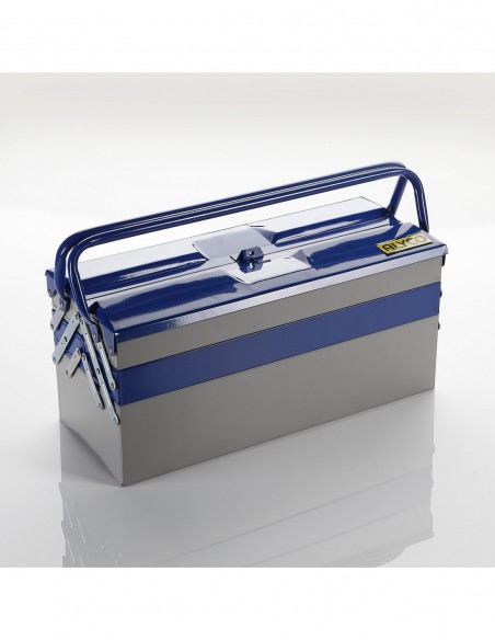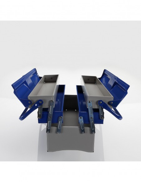 Caja metálica con contenedor inferior y bandejas colapsables de chapa de 0,6 mm.