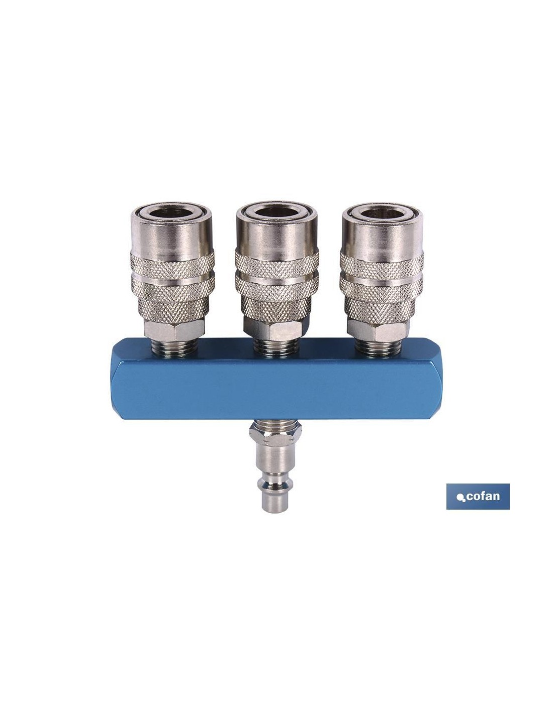 Enchufe rápido de 3 salidas. Recomendado para instalaciones en donde puedan enchufarse varias tuberías en la misma fuente de alimentación de aire. Hecho de acero endurecido tratado térmicamente con una superficie chapada en níquel que puede resistir el óxido y la corrosión.