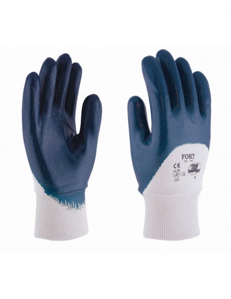 Guante de nitrilo con soporte de algodón tipo jersey.