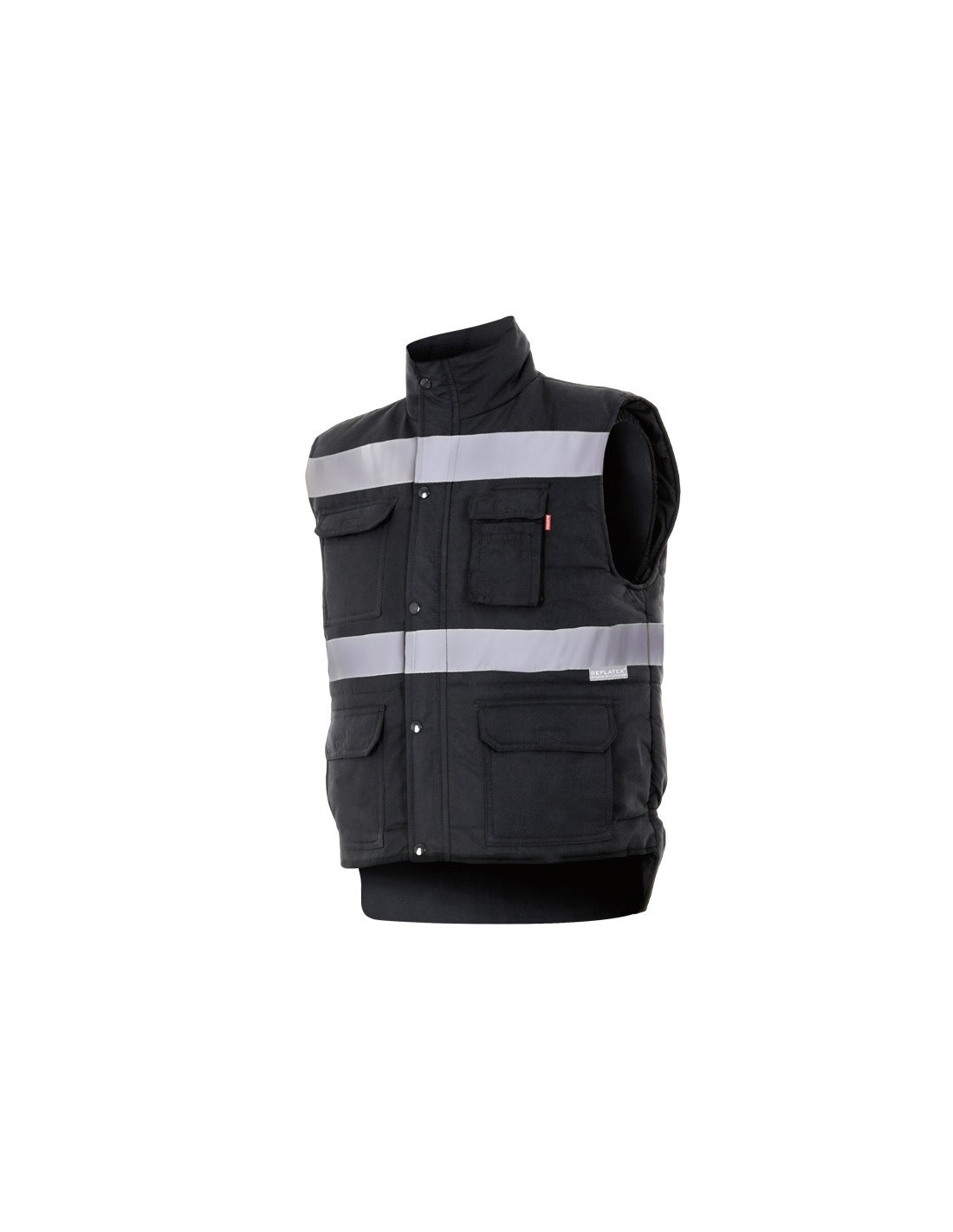 1 bolsillo de fuelle en el pecho, con tapeta y velcro. Sobre él, compartimentos para bolígrafos