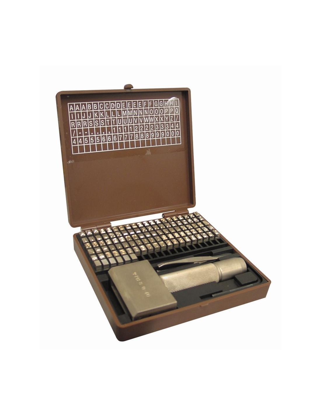 Juego 100 caracteres acero especial niquelado en estuche.
