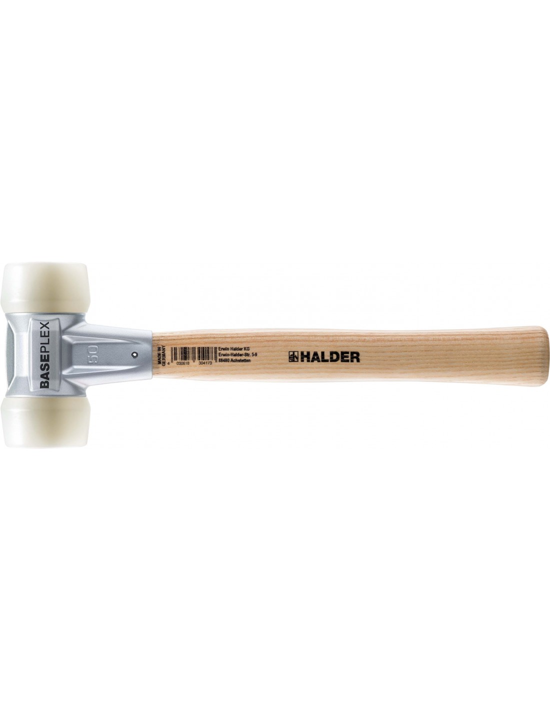 Martillo universal para TODO tipo de aplicaciones en industria, artesanía, ocio, etc. con cuerpo fabricado en fundición de zinc de alta presión, bocas intercambiables de Nylon blanco en ambos lados, y mango de madera de fresno.
