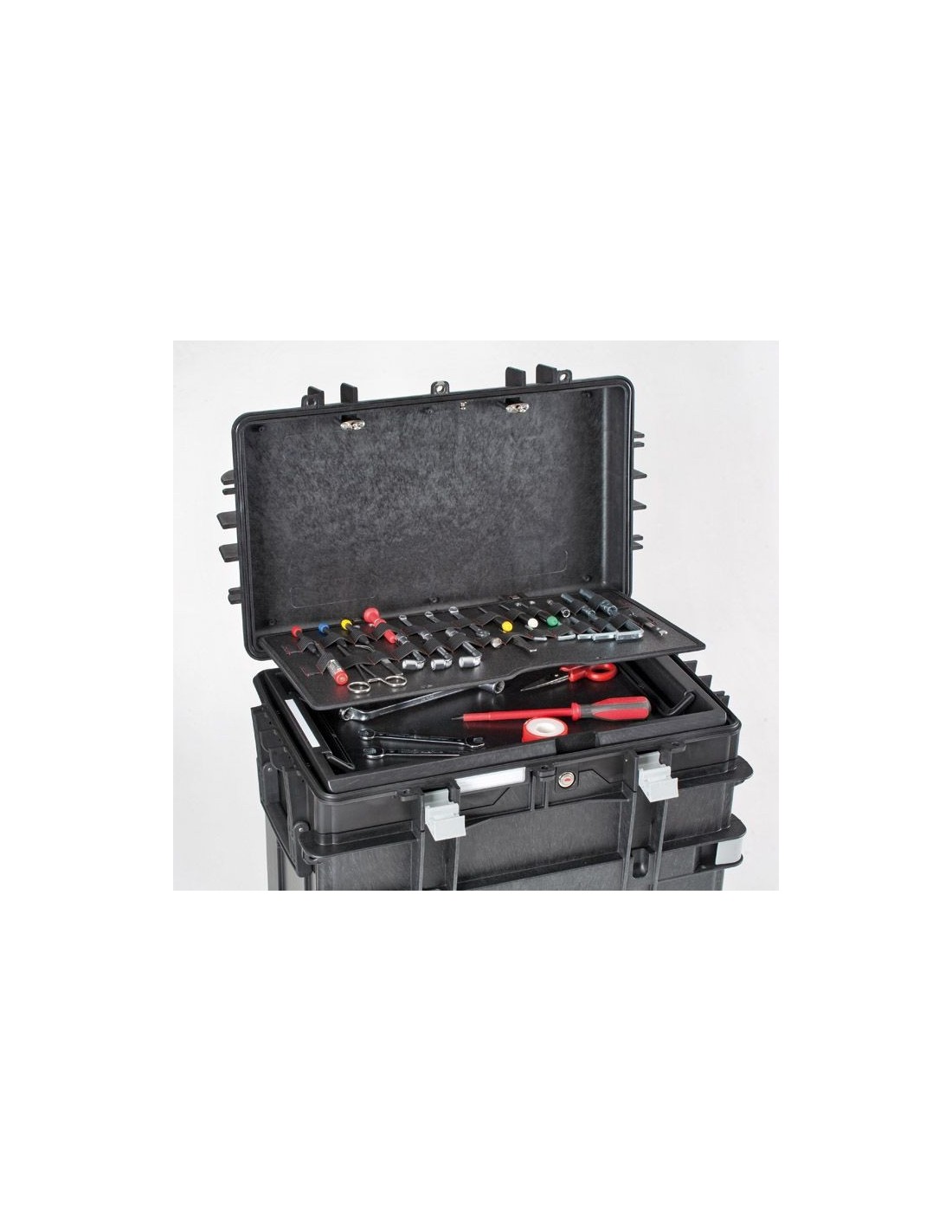 · 1 Cajón de 60mm con espuma bicolor (gris parte superior / roja parte inferior) precortada de grosor 30mm (ref. AIBOX6.F)