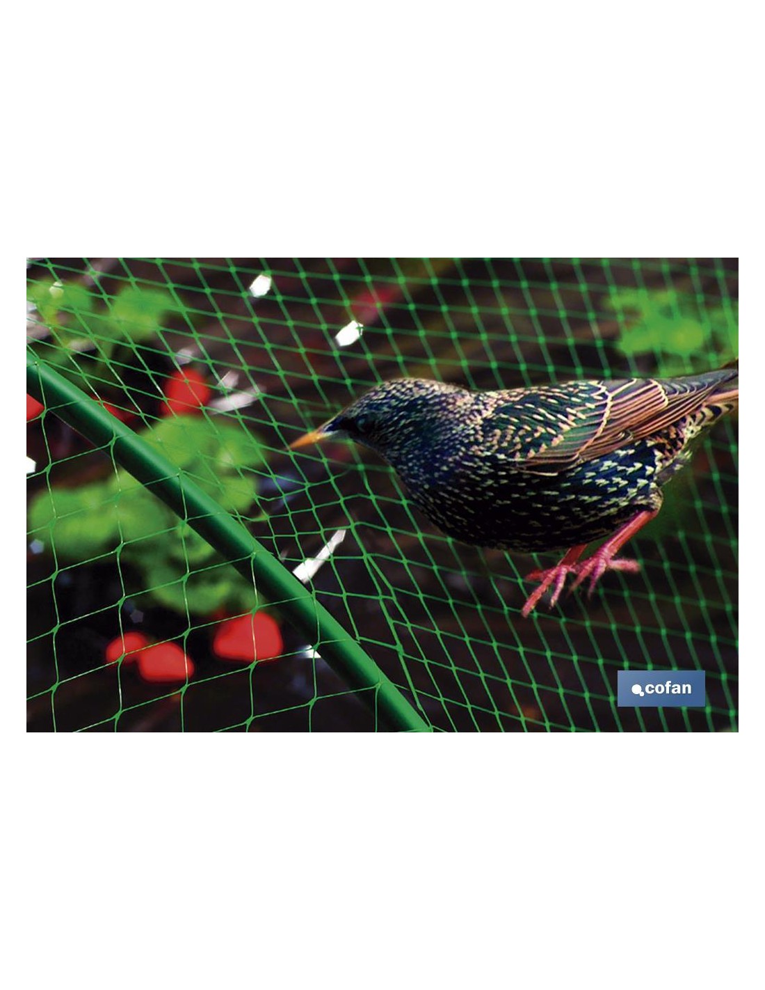 Red de malla antipájaros ligera, robusta y muy suave. Actúa como defensa pasiva contra los pájaros, de tal forma que protege los cultivos sin dañar a los animales. No impide la penetración de la luz. Malla de protección de polietileno para frutas, plantas, verduras, jardín. Se puede utilizar como red para pájaros, red para verduras, malla de protección, malla de cubierta, etc. Las mallas antipájaros Cofan protegen los frutos de su trabajo de los depredadores. Malla tejida de polietileno con alta densidad, fuerte y duradera. Esta malla está estabilizada a los rayos U.V. Cuenta con diferentes tamaños de altura y de longitud. Su composición es de 7 gramos por metro cuadrado (7g/m2). Fácil de instalar. La malla antipájaros se puede cortar a cualquier tamaño y no se desenreda.