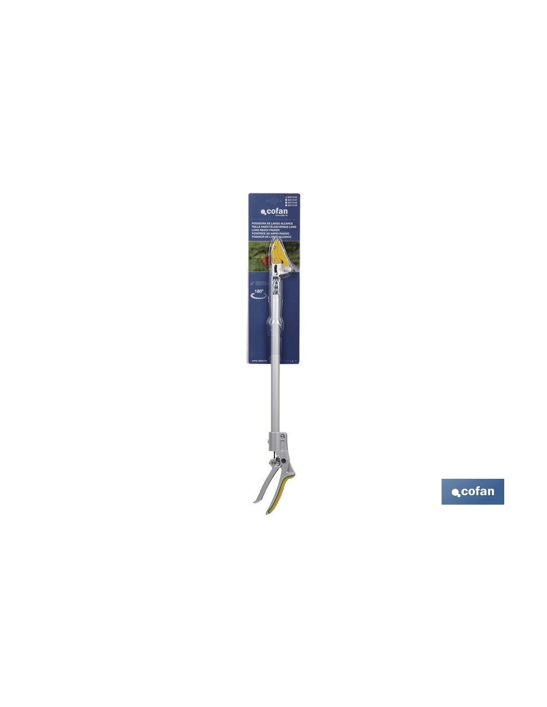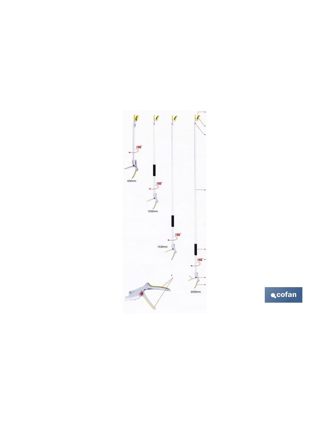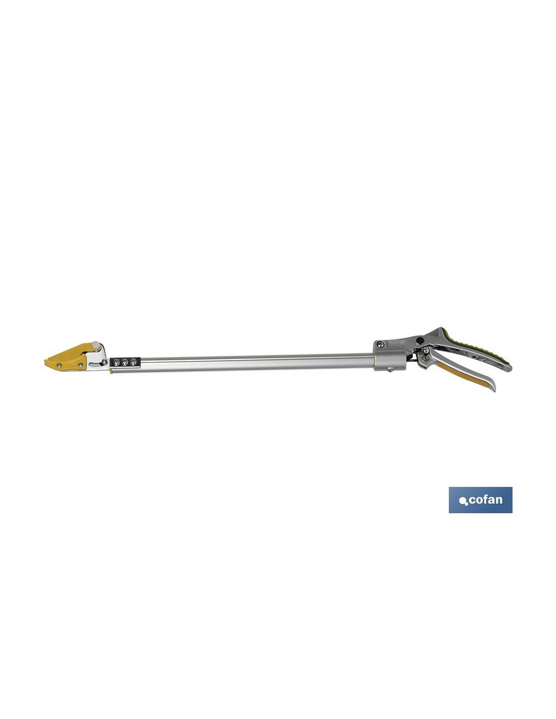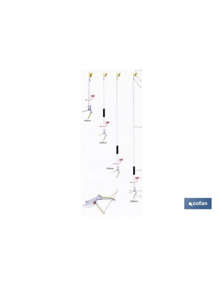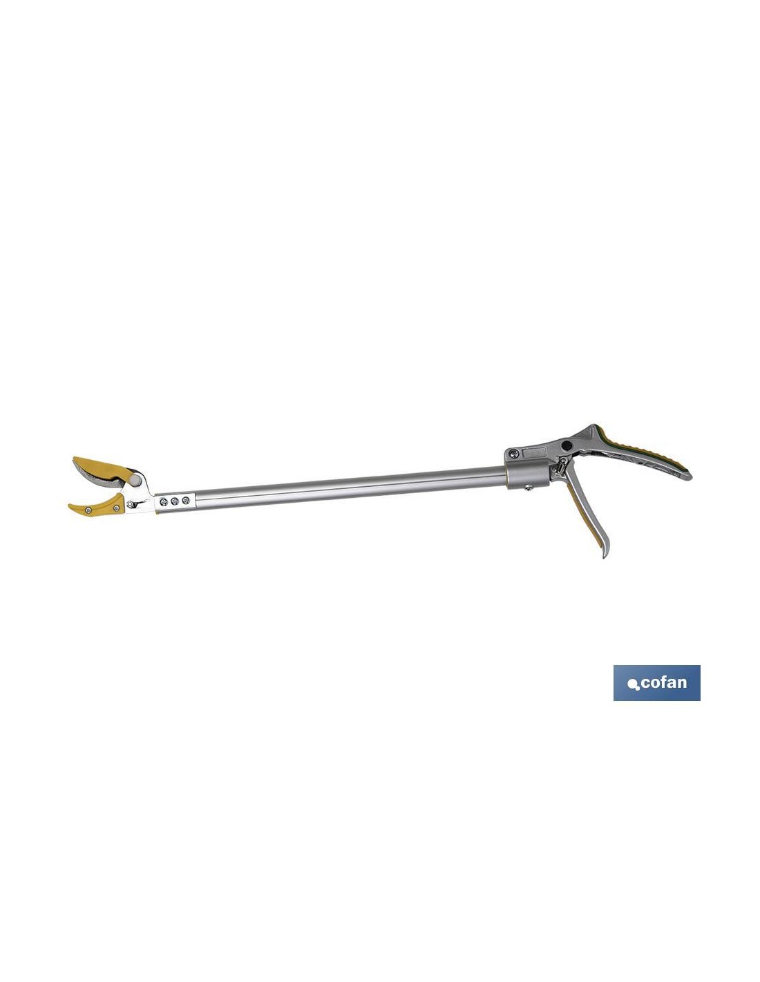 Podadores de largo alcance con tijera y cuchilla de acero al carbono SK-5, bañadas en PTFE antideslizante. Con dispositivo especial corta y agarra. Fabricadas de aluminio de alta resistencia, para cortar y podar en sitios de difícil acceso. Cuenta con mango de espuma, cierre de seguridad y un mango antideslizante muy suave. Disponible en diferentes tamaños (630 mm, 1230 mm, 1530 mm y 2030 mm).