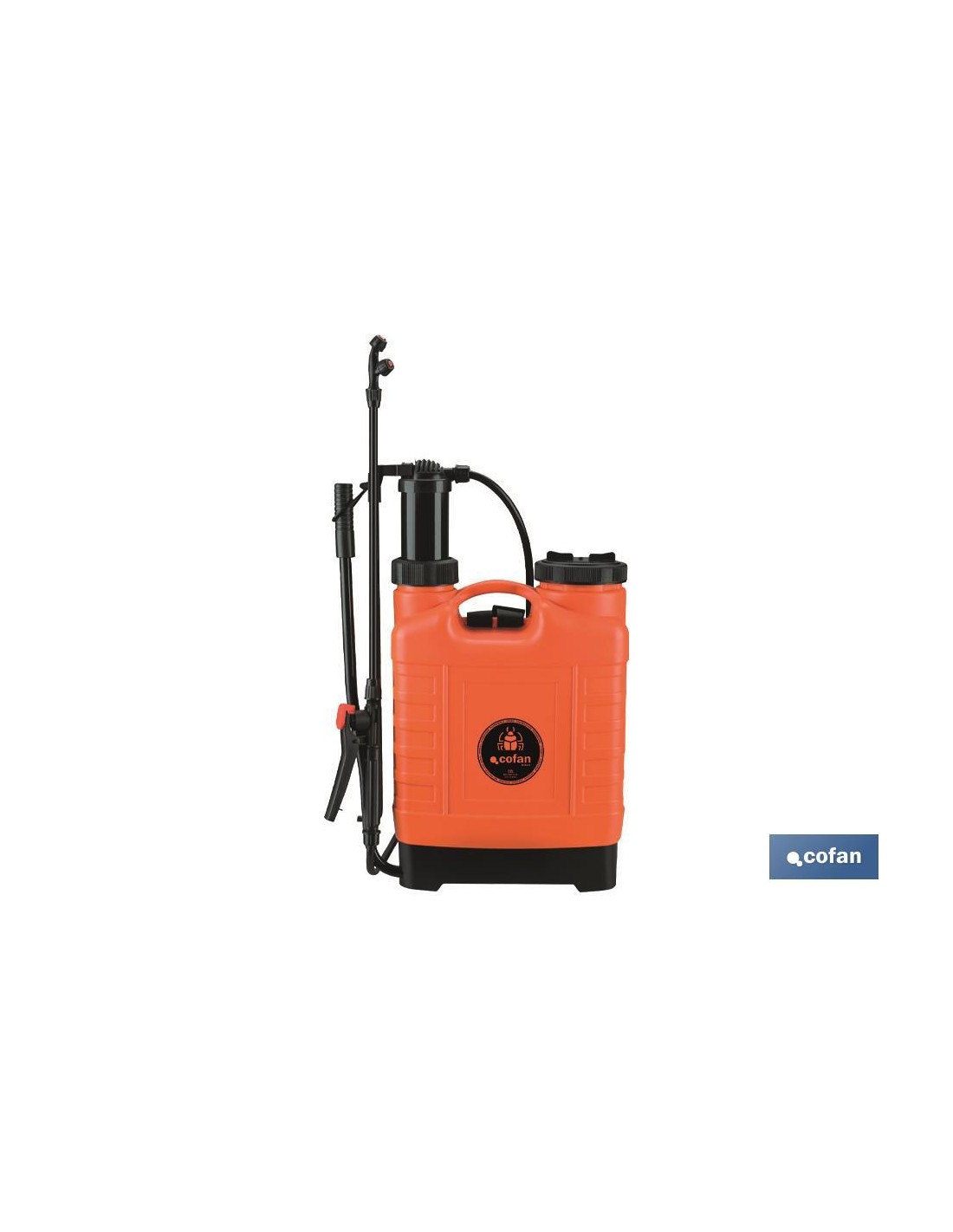 Pulverizador de espalda con capacidad para 12 litros. El pulverizador es manual y cuenta con una lanza de plástico de 50cm. Presión de hasta 3 bares. Incorpora gatillo ergonómico. Está indicado para usarse sobre árboles y huertas. Utilización en agricultura y jardín. Incluye 3 boquillas, con correas ajustables.