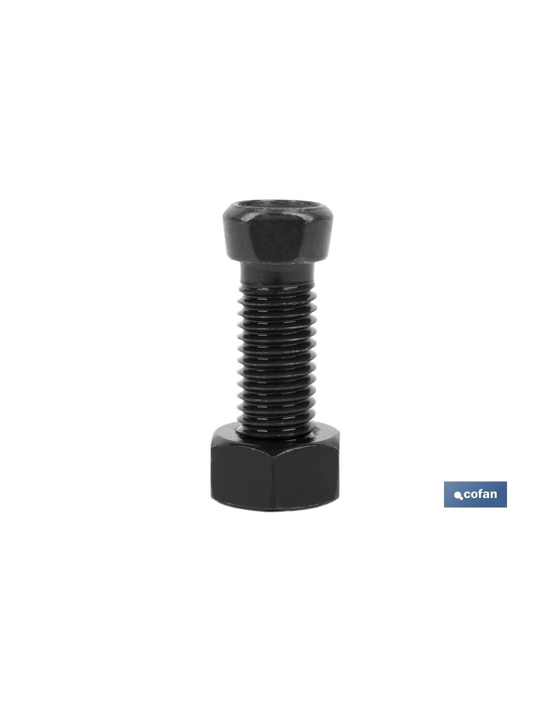 Tornillo de arado de cabeza cónica fabricado en acero y con baño pavonado. Recomendado para utilizarse en aplicaciones relacionadas con el sector agrícola. Se trata de un tornillo de calidad 12.9 de alta resistencia y rendimiento que resiste a las altas temperaturas. Incluye una tuerca hexagonal DIN 934 de calidad 10. Disponible en métrica 12 y 14, y en diferentes longitudes. Según la medida del tornillo, este se suministra en cajas de 25 o 50 unidades.