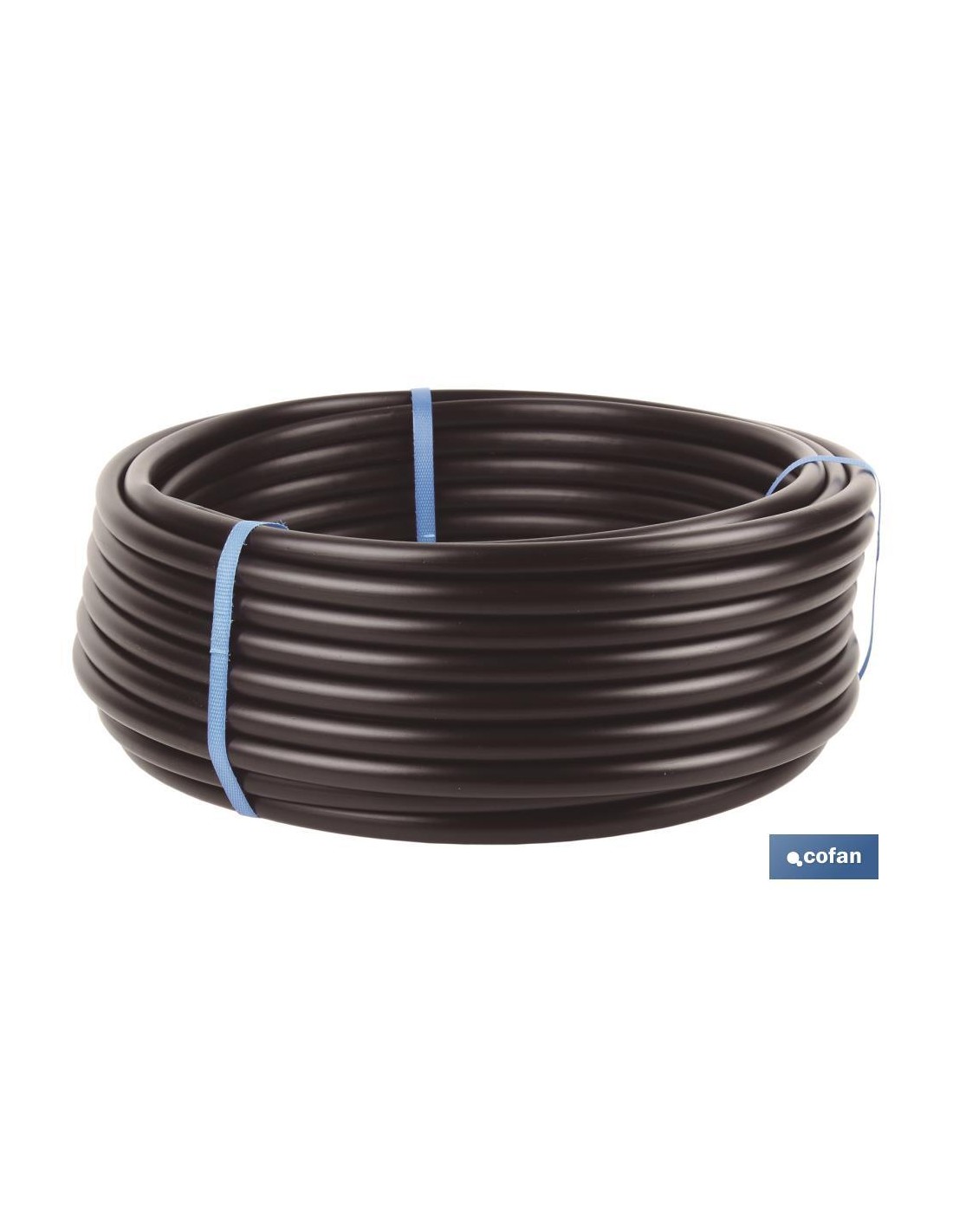 Tubo de riego por goteo de color negro sin goteros. Disponible en diferentes medidas que se adaptan a las necesidades más exigentes. Fabricado en material resistente a las condiciones climaticas más adversas. Puedes complementarlo con distintas conexiones y accesorios para riego por goteo de Cofan.