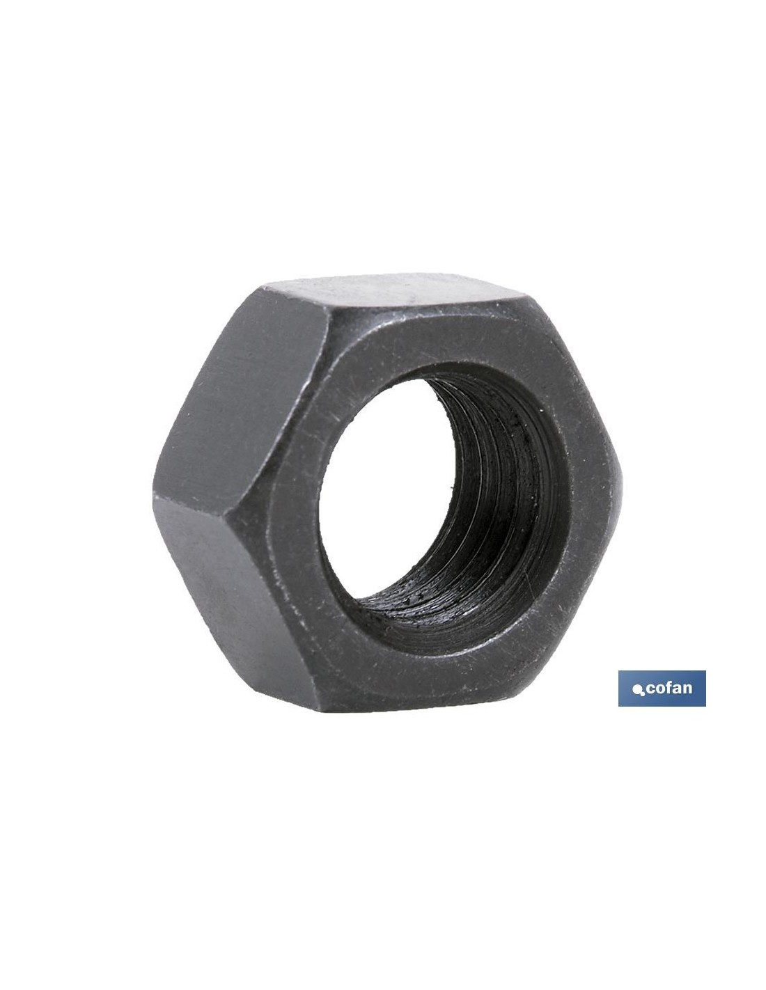 Tuerca hexagonal métrica DIN-934 clase 10 acabado negro. Medidas desde M-6 hasta M-30.