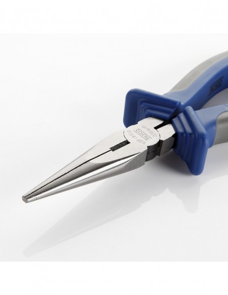 Este alicate de puntas cuenta con una gran resistencia al desgaste al estar fabricado en Acero al Cromo Vanadio. El mango es bimaterial, lo que facilita el agarre y el confort al utilizarlo. Además, el cuerpo del alicate está tratado térmicamente para darle mayor dureza y los filos de corte están templados por inducción para aportar al alicate una mayor capacidad de corte y reducir el desgaste.