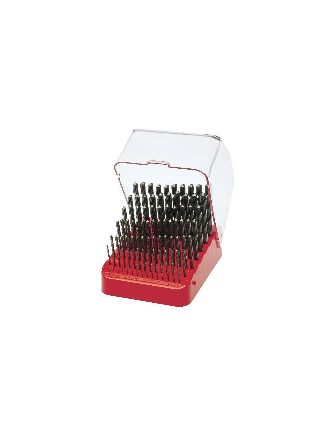 Juego de 91 brocas espirales mango cilíndrico DIN 338 tipo N HSS de 1,0 mm hasta 10,0 mm de diámetro x 0,1 mm ascendente en estuche plástico rojo con
