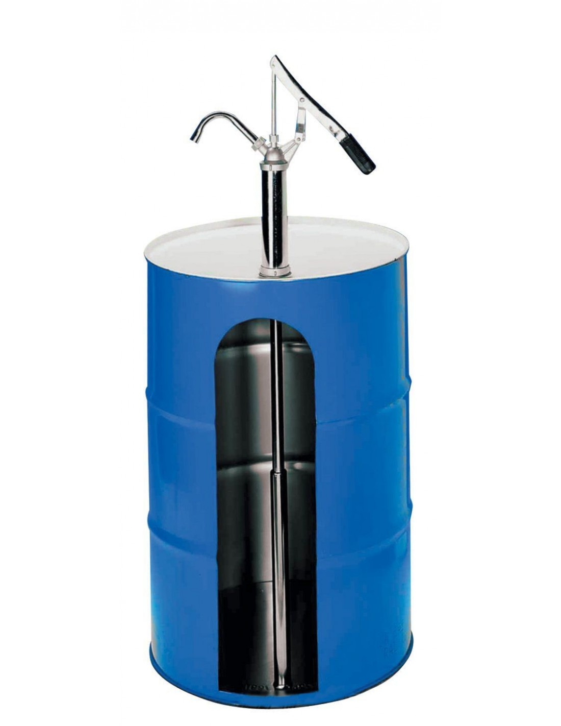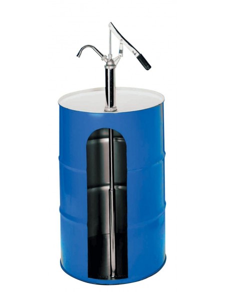 Para barriles. Tubo telescópico de acero 440-860 mm. Palanca de acero. Suministro 16 l/min. – 300cc por golpe palanca. Utilizable únicamente con aceites hasta clase SAE 90. No utilizable con grasas.