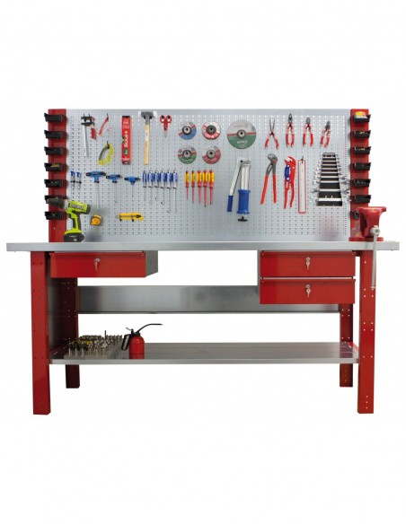 Travesaños construidos con 4 perfiles curvados que le atribuyen una enorme fuerza para la mejor estabilidad del banco de trabajo.