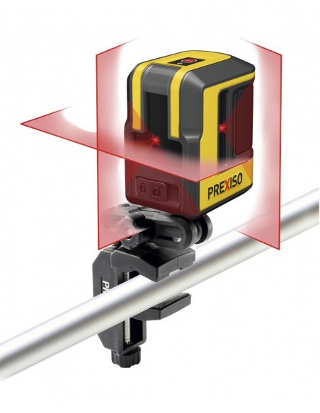 Nivel láser de 3 líneas horizontales, verticales y techo + una línea vertical de 90 grados como punto de referencia adicional (múltiples aplicaciones). Modo manual de bloquea de la línea para establecer el nivel en cualquier ángulo deseado. Con tornillo de 6,35 mm (1/4") que permite montaje en pared o en trípode. Incluye pinza universal PAC.