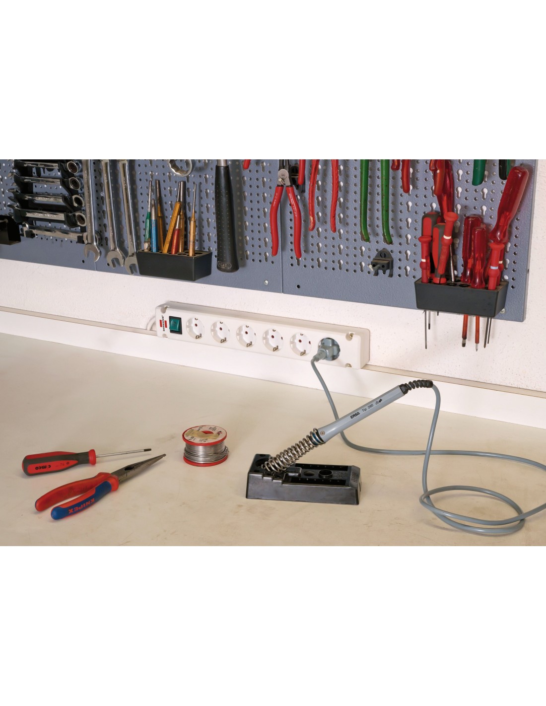 • Amplia separación entre las tomas de corriente.