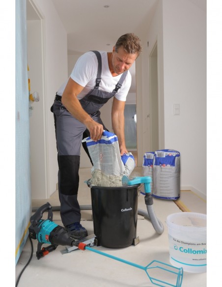 El dispositivo de succión de polvo dust.EX se sujeta al borde del cubo de mezcla en combinación con una aspiradora. El resorte de sujeción permite la fijación a casi cualquier cubeta de mezcla. Encienda la aspiradora para trabajar sin polvo mientras llenas el cubo o mezclas. dust.EX elimina de manera cómoda cualquier material que se escape.