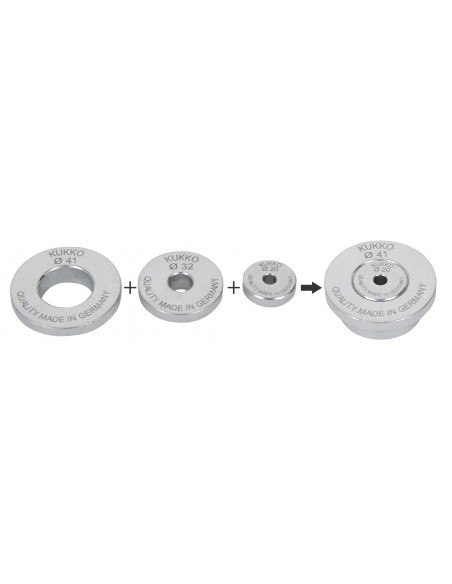 Para apoyar el husillo de presión en el caso de ejes huecos. En total 3 piezas de presión distintas. Sistema modular, las piezas de presión se pueden combinar uniéndose.