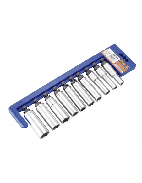 JUEGO DE VASOS DE VASOS DE 1/2" SERIE LARGA EN REGLETA DE PLÁSTICO ALYCO