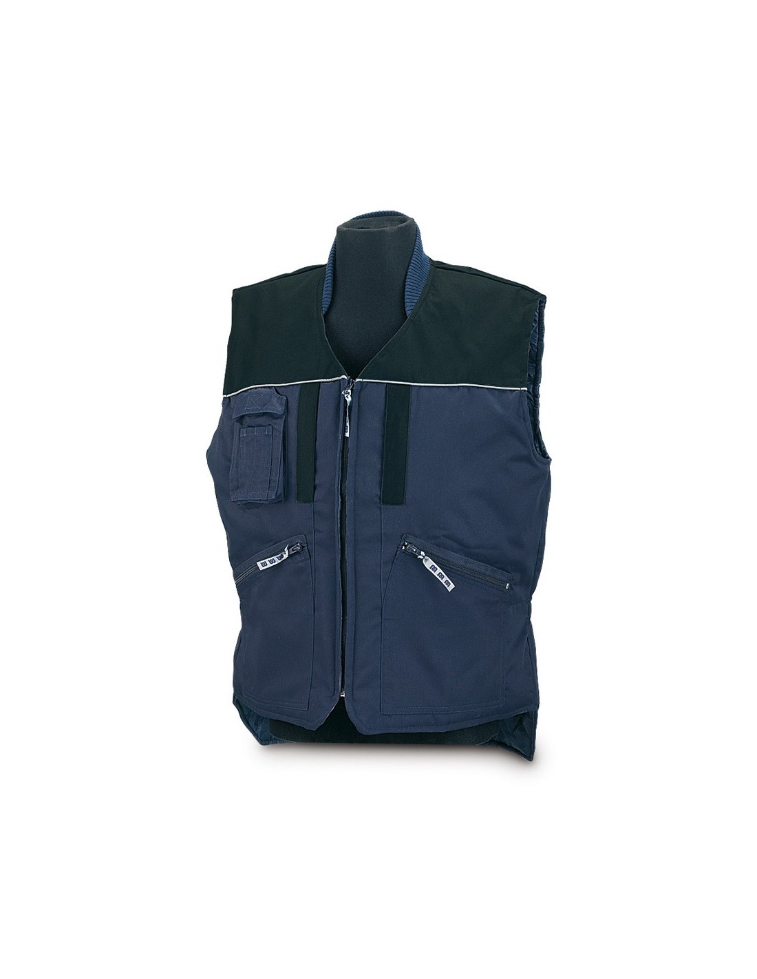 Chaleco con acolchado ligero. Hombros reforzados con tejido oxford nylon más resitente a la abrasión. Ribetes reflectantes.