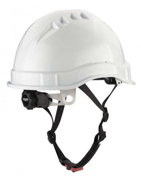 Mod. "VOLT". Casco de protección para la industria eléctricamente aislante, cierre ruleta, arnés textil 8 puntos y barbiquejo.