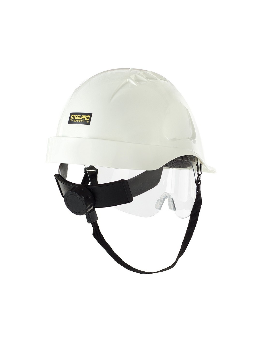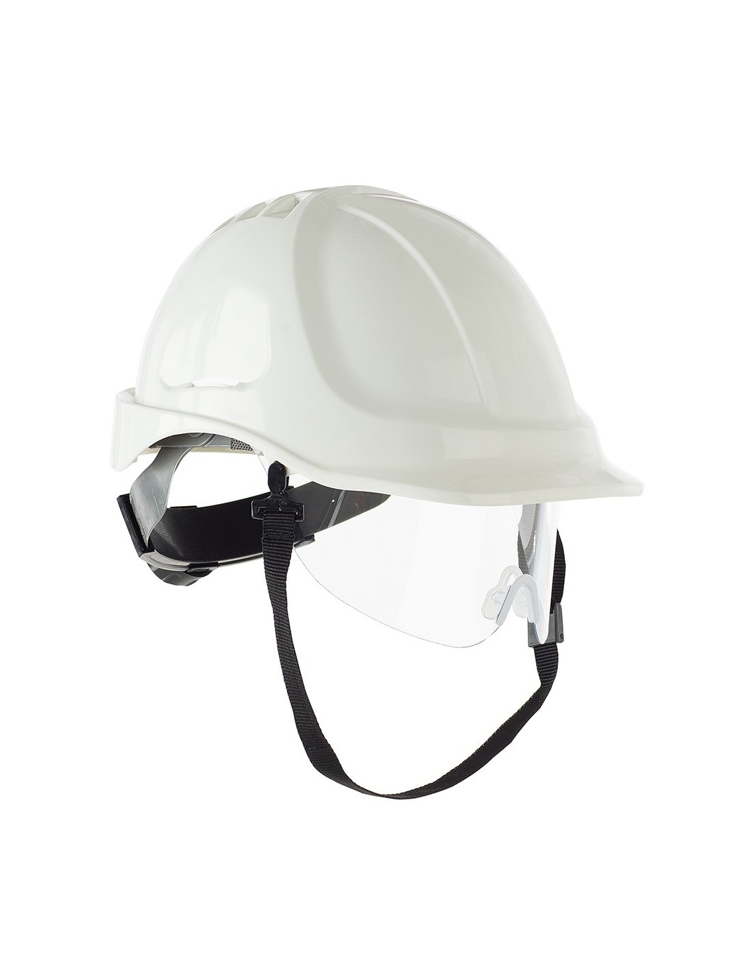 Características: Casco de protección para la industria (EN397)Casco eléctricamente aislante para instalaciones de baja tensión (EN50365). Fabricado en ABS (termoplástico de gran tenacidad, dureza y resistencia química y a impactos).Visor transparente de policarbonato retráctil con puente nasal de silicona y resistencia incrementada (S). Clase óptica 1.Cierre mediante ruleta que regula el contorno de 52 a 63 cm.Visera corta y barbiquejo para trabajos en altura.Arnés interior textil con banda antisudor y arnés en tela con 8 puntos de anclaje.Hendidura estándar (3 mm) para acoplar orejeras de protección auditiva. Ajuste mediante ruleta tipo roller".Resistencia a bajas temperaturas (-30ºC).Resistencia a la deformación lateral (LD).Resistencia eléctrica (440V).Peso: 450 gr. Usos en todo tipo de actividades en la que sea exigible un casco de protección para la industria (caída de objetos), tales como construcción, obra pública, industria, minería, mantenimiento, túneles...así como aislar la cabeza del usuario de posibles contactos eléctricos de baja tensión, y proteger los ojos contra impactos. Colores disponibles: Blanco. "