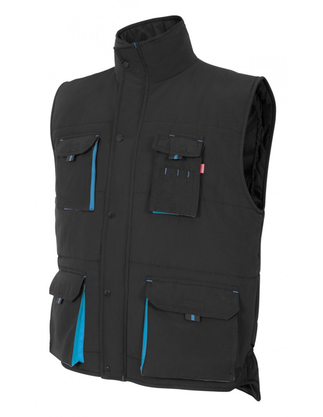 1 bolsillo de fuelle en el pecho, con tapeta, tirador y velcro. Sobre él, compartimentos para bolígrafos