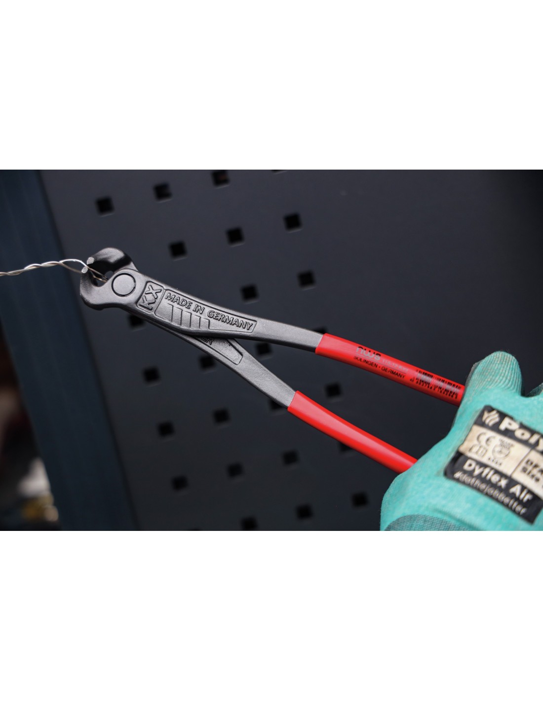 Acabado: Cabeza pulida color titanio y mangos plastificados color rojo.
