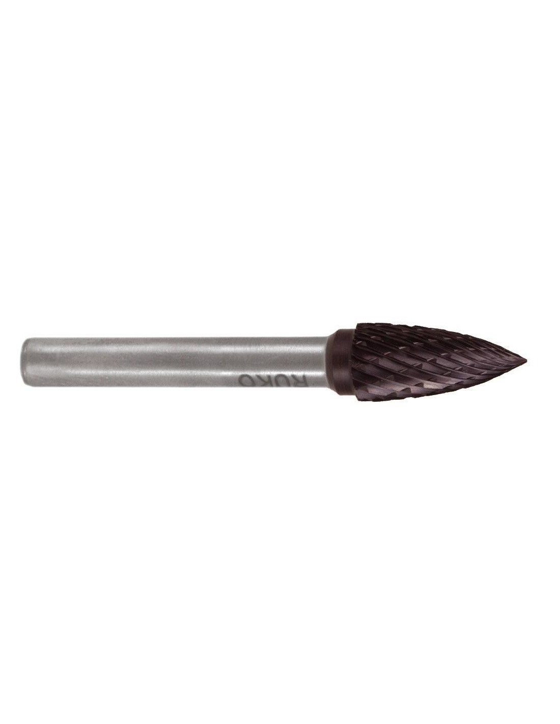 Fresas de metal duro con vástago Dentado cruzado KZ4 fino. Gran poder de corte combinado con alta tenacidad. El dentado cruzado, proporciona mayor capacidad de corte, que el dentado simple.Campo de aplicación: desbarbar, matar cantos, ajuste de superficies y ángulos, eliminar cordones de soldadura, en aceros de alta aleación, aceros resistentes a la corrosión, a ácidos, y al calor, fundición y plásticos. Dentado: KZ 4 - fino. Superficie TiNC. Cajita plástico individual con colgador.