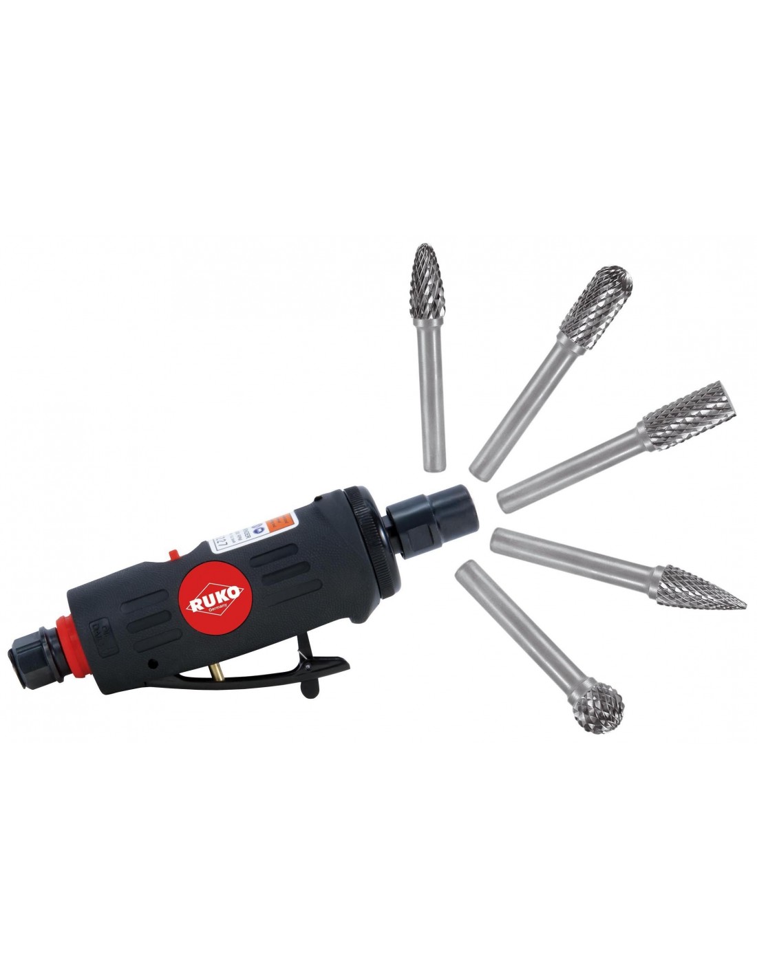 Kit amoladora neumática y juego 10 fresas metal duro con vástago de 6 mm