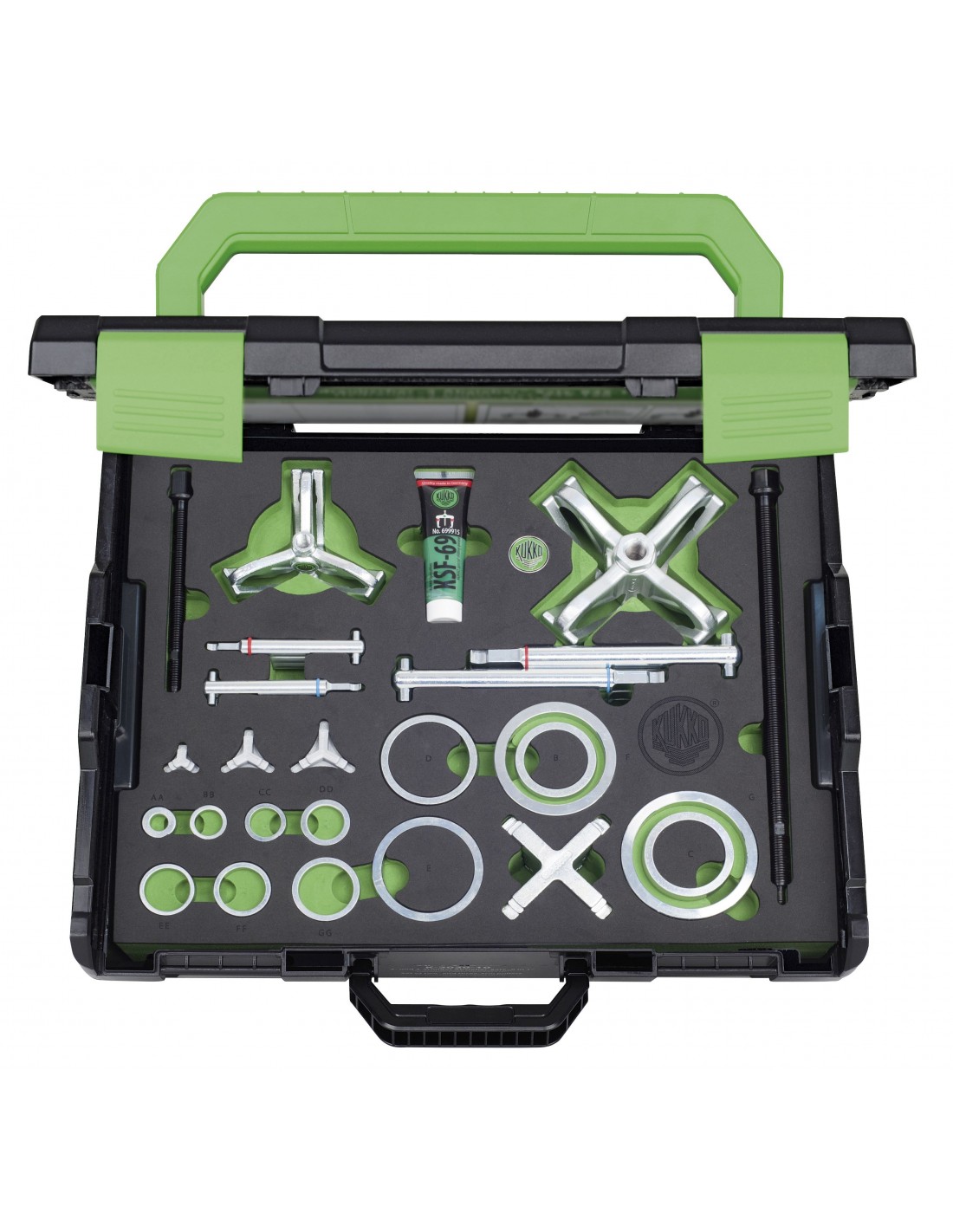 · Con este extractor se expulsan de manera rápida y sencilla los rodamientos de bolas ranurados que descansan a la vez sobre un eje y en una carcasa.