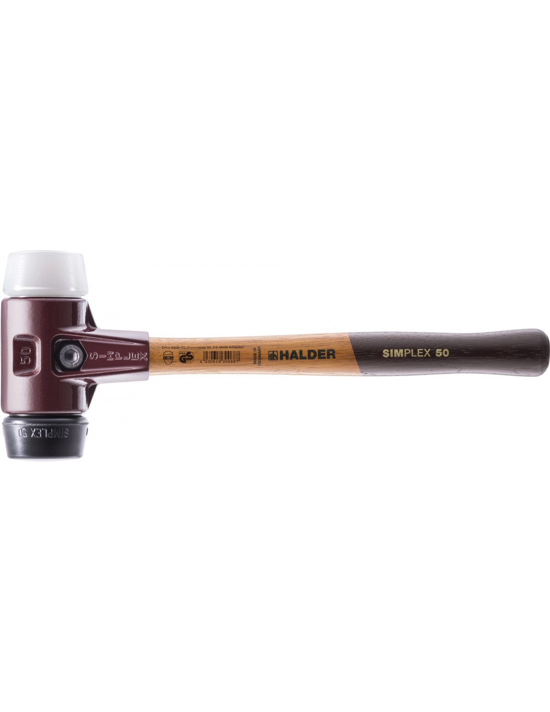 Maza con bocas y mango intercambiables, cuerpo de dos piezas de acero fundido, mango de madera de alta calidad.